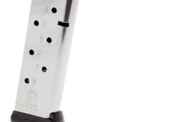 Made in USA SR1911®, stainless steel, 7 or 8-round, .45 caliber magazine with Ruger® logo and removable plastic floorplate.