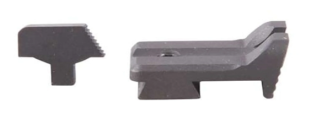Front/rear sight combo replaces a 1911 Auto's issue sights with a minimum of hassle. Blade overhangs the back of the slide for fast pick-up. Corners and edges are rounded. Mounts in factory dovetail.