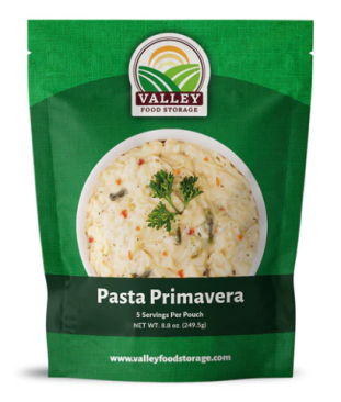 Valley Food Storage Pasta Primavera features real bits of broccoli and peas with our amazingly thick Primavera sauce making it perfect for a quick and convenient lunch or dinner for the whole family. Each pouch of pasta primavera contains 5 servings.