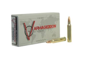 "Get the Nosler Varmageddon .223 Remington 62gr Hollow Point Flat Base Ammunition from Botach. With 20 rounds, brass case, and supersonic velocity, it's a must-have for varmint hunters."