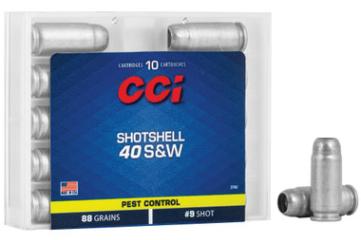 Get the CCI .40 S&W 88gr Shotshell Ammunition 10-Rounds from Botach. Designed for pest control, these rounds are perfect for rat or snake shot and close-range plinking.