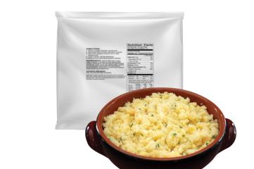 Savor rich, buttery flavor with our Homestyle Potatoes, made with butter and cheddar cheese. No heat or cooking required—just add cold water, mix, and enjoy smooth, cheesy potatoes anytime, anywhere.