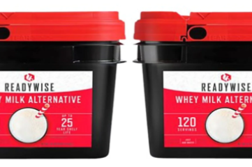 240 Servings of Wise Shelf-Stable Long-Term Whey Milk. Each individual bucket contains durable Mylar pouches of powdered whey milk that can be re-hydrated in a matter of minutes by simply adding water.